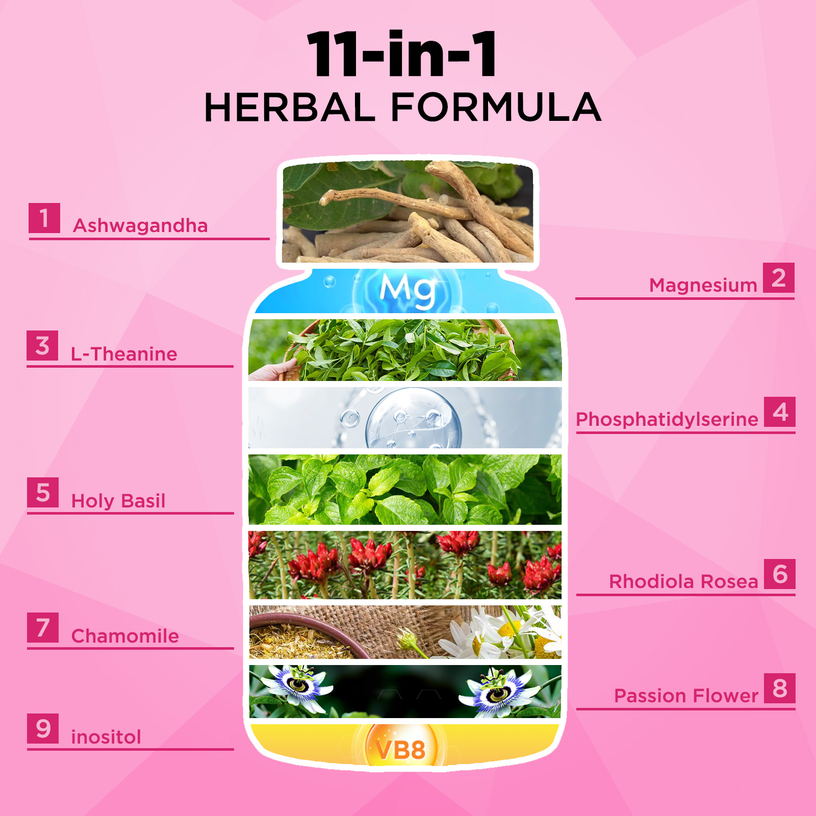 • Body & Brain Relaxation: L-Theanine, Phosphatidylserine, chamomile, passion flower, and magnesium glycinate help body relaxation, and muscle recovery, and support brain energy. These cortisol supplements help manage everyday challenges for women