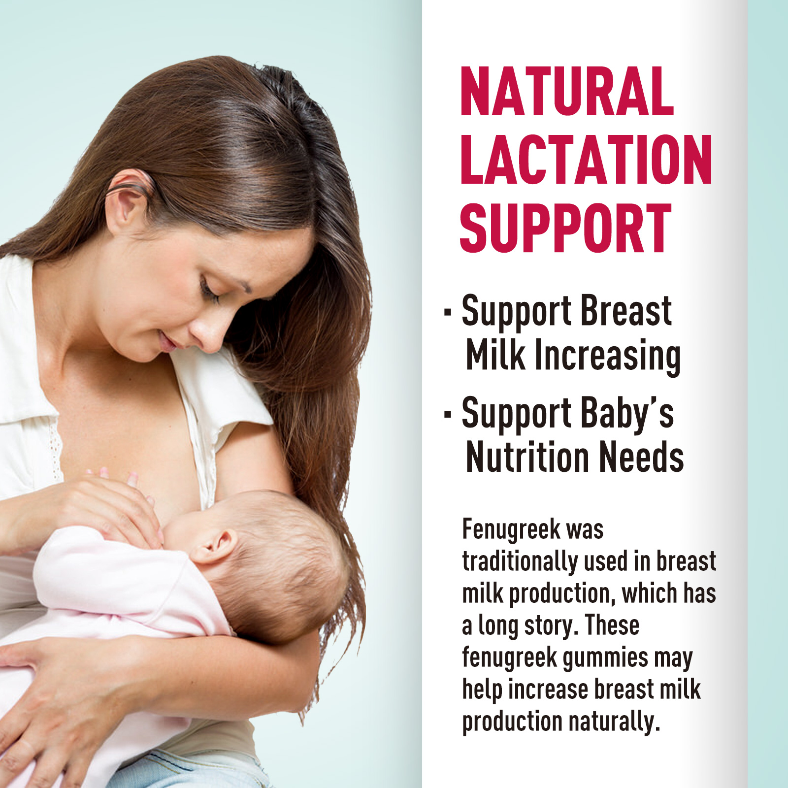 • Healthy Lactation Support. Fenugreek was often used in breast milk production. Fenugreek seeds are thought to effectively support breastfeeding mothers and increase breast milk production.